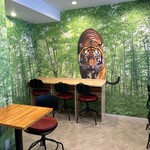 確かにポップで入りやすい店構え。店内は大きな窓があり、外の景色も見えて開放感があります。ベンガルタイガーらしさのある虎の絵もおしゃれに調和する空間。価格的にも本店の「バターチキンカレー」は1,350円のところ、エクスプレス店はちょうど1,000円。しかしながら量も味も同じということで、お得となっています。