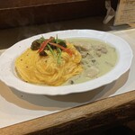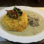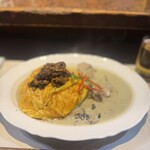 タイのグリーンカレーをベースとしているのですが、よりクリーミーでスパイシー。フレンチの要素も感じる唯一無二の絶品グリーンカレー。きのこのデュクセルもフレンチのデュクセルのカレー仕立てという趣で実に楽しく、相変わらず何を食べてもおいしいです。