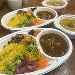 カレーはグルテンフリー。牛肉は味噌の奥深さ、サバは魚介のうまみがしっかりと感じられる仕上がりで優しい味付け。だからこそこの副菜ビュッフェで自分好みに仕立てていく楽しさがあるのです。