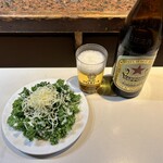 まずは「パセリとチーズのサラダ」300円から。チーズは提供時に削りかけてくれます。チーズに関連する仕事もしていたシェフの経験から厳選した、コンテチーズとパセリ。ドレッシングも自家製。シンプルだからこそ素材の良さを感じるおいしさで、この価格はお得すぎます。