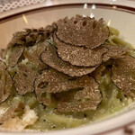 「8席の店でトリュフの消費量は1位じゃないかと。でもこのくらい削らないとトリュフオイルを使って香りづけしなければならないので……。完全赤字覚悟です」と笑って話す岩井さん。確かにいい香り!