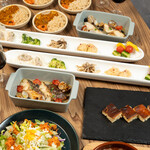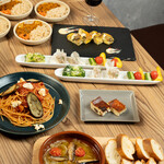飲み放題付き4,550円のお得なコースをオーダー。老舗麹店直伝の麹や自家仕込み味噌を使っていて、いぶりがっこと味噌のポテサラ、塩麹の旨みが利いて盛りもいい、なすとトマトのパスタなど満足度の高い品がそろいます。看板の発酵バスクチーズケーキは4種あり、この日はブルーチーズ。香りと塩気がいいアクセントになっていました。他に麹プレーン、味噌、酒粕レーズンがあります。1階はバル、2階は半個室が2つあり、女性グループなどの利用が多そうです。