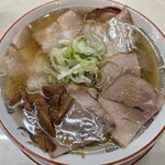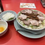 「らぁ麺 はやし田」や「らぁ麺 鳳仙花」など数多くの人気店を持つINGSが、2025年の年末にオープンしたばかりの最新ブランドです。こちらも「ちゃんのれん組合」には加盟していませんが、その外観やラーメンは明らかにちゃん系を研究して作り上げたことがわかる、ちゃん系インスパイア店です。何枚ものってくるチャーシューがおいしく、菅野製麺所の麺は本家ちゃん系のお店のものよりも張りがある印象です。味噌にすると背脂を浮かせた独自アレンジとなっており、こちらもおすすめです。ルイボスティーやジャスミン茶がサーバーで用意されるなどの工夫も見せています。
