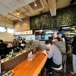 木製の家具にグリーンの装飾がカフェのような心地よさの店内。座席は、カウンター席と4人掛けテーブル席6卓があるので、1人でもグループでも来店しやすそうです。