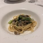 看板メニューの「武州和牛のアッロースト」5,500円は、料理長・奥野木氏の出身地である埼玉県が誇るブランド牛を使用した一皿。丁寧な火入れによって引き出された肉のうまみと、しっとりとした食感が印象的で、シンプルながら素材の力強さを感じられる仕上がりです。イタリア各地の個性豊かなワインとの相性も良く、ソムリエである原品氏によるペアリング提案も楽しみのひとつとなっています。
