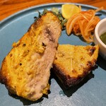 おすすめは、角煮のように仕立てた豚肉に、カレーをソースと解釈して合わせた「ポークビンダルー」1,500円と、インド産の小麦粉で手ごねし、タンドール窯で焼き上げた「チーズクルチャ」の組み合わせ。黒酢のように酸味の強いナチュラルワインと合わせることで、料理として完成するようマリアージュが考え抜かれています。