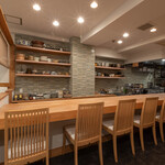 店内はカウンター、テーブル含め20席。衒いのない内装は、気取りなくどこか清潔感を漂わせる落ち着いた雰囲気だ。そのカウンターに立つのが、22歳の杉森空人さん。なんとこの若さで、同店の料理長を任された逸材だ。が、当の本人はいかにも泰然自若、豊富なアラカルトメニューにも動じることなく淡々とこなす。