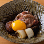 また「サーロインと九条ネギ すき焼き」もご飯を呼ぶ鉄板メニュー。黒毛和牛のサーロインを贅沢に用いたそれは、卵黄の黄色が映えるビジュアルも食欲をそそる佳品だろう。