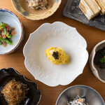 が、ホタルイカはスチームしたものを軽く炙って香ばしさをプラス。山菜類は、ゆでてからだしに漬けて下味を付けるなど細やかな仕立ても望ましい。〆ものは、他にもヒレカツサンドや京ネギうどんなど豊富に用意されている。