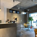 統一感ある色調でまとめられた店内は、落ち着きのある心地よい空間です。イタリアのバールのような天然大理石を使用したカウンターや、季節のお花を添えたテーブルなど、24席の座席が並んでいます。また、店先のベンチシートはペット同伴もOK。お散歩帰りにも。