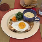 地元民の定番喫茶店の一軒かと。ユニークな盛り付けで、バタートーストにたっぷりの野菜サラダ、ポテトサラダ、ゆで卵、ハム。お箸がついてるのも好きなポイントどす!