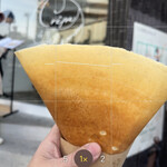 名物は1号店の表参道でも人気の、黄金に輝くパリパリ系クレープが見事な「バターシュガー」800円。1年半の開発期間を経て誕生した、サクサクとしたクッキーのような香ばしさが味わえる唯一無二の逸品です。