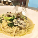 セイコガニのパスタとゴルゴンゾーラとモッツァレッラを通常の5倍のせたピザが人気。