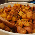 砂肝はコンフィにしてから使用。レバーはソテー。それをスパイスとニンニクの芽と合わせたオリジナル。これはお酒のおつまみにも最高だし、ご飯のおかずにも最高です。
