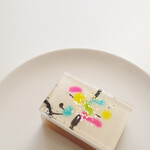 ステンドグラスの様々な光を表現したお菓子です。菓銘は堂本印象美術館・館長が名付けられたそうです。こちらのお菓子は、堂本印象が描いた作品を基に製作した化粧箱に真空パックされたお菓子が入り包装されているのでお土産にも最適です。