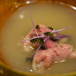 「熟成させることで美味しくなっているかどうかは分かりませんが、時間が経ってもそばの風味を取り出せるということが面白くてやっています。品種や産地、その年の出来にもよりますが、10年以上熟成させたそばから、新そばのような風味が出ることもあるんですよ。当店で熟成させているそばの中には最長14年を超えるものもあり、中には絶滅してしまった品種も含まれています。そんなそばからも豊かな風味が取り出せる可能性があることが、熟成の魅力です」(柳澤さん)