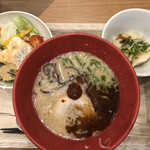 ラーメン+サイドメニュー3品セット(1,400円)例:赤丸ハーフ、チャーシューSALAD、水餃子、十穀米 明太子ライス