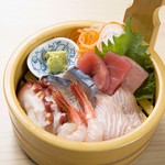 週替わりの手作り惣菜は常時6種類。高野豆腐、かぼちゃの煮物、ひじき、浅漬けなど、どこかホッとする家庭的な料理が魅力です。加えて、向かいにある姉妹店「和菜房 the kitchen 晴」で作る多彩な料理もオーダーできるので、サラダからつまみ、鍋、〆ごはんに至るまで大充実。