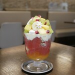 その名の通り、いちごが山盛りになったパフェは、約1パック分のあまおうを使用する贅沢さ。たっぷりのいちごに生クリーム、スポンジケーキ、カスタードクリームが隙間なく埋められており、お腹も大満足の一品。※各日30個限定販売