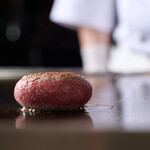 オススメしてもらったのは、「ブラックステーキ」。熟成肉に、トリュフ塩とブラックペッパー、さらにコーヒーパウダーをつけてから焼くというユニークな調理法を取り、香ばしさと深みのある大人な味わいに仕上がっている。