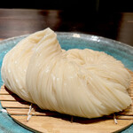 サーブ時には目の前で、テット・ド・モアンヌ専用の削り器を使って、花びらのように薄く綺麗にスライスしてくれるのも嬉しい。パスタやソースによく絡み、香りが立ち、見ているだけで食欲がそそられる。