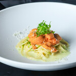 “北海道産生雲丹と浜名湖産生海苔のスパゲティーニ”2,300円。コースの場合、プラス1,000円でパスタをこちらに変えられる