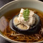 ややねっとりした口当たりの乗鞍在来はシンプルにせいろにし、品の良い甘みを楽しませる一方で、会津在来は、その草っぽい風味を生かした玄挽きで打ち、個性を引き出している。また、温蕎麦には、打ってから一晩ねかせて熟成させた対馬在来を用いるといった按配だ。