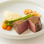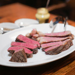 前菜にパテドカンパーニュやコーンドビーフ、豆とキャベツのサラダ、アッシュパルマンティエなどを頼み、シェフが持ってくる塊肉から近江牛のウチモモ、ソトモモ、鹿ヒレ肉を選んだ。ソトモモなんて硬くてステーキでは食べられないと思っていたが、新保さんの手にかかると、ほどよい硬さと味で実は一番うまかった。