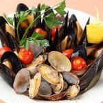 崎陽軒本店 イタリア料理「イルサッジオ」の「パスタ・エ・フィオーリ~パスタ・エ・ファジョーリ海老バージョンに花を添えて」1,840円(サービス料別)。イタリアの定番パスタに海老と野菜の濃厚な味わいと花・ハーブ柑橘類を利かせて。