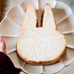 食パンをカットすると、白ウサギに変身! 低温でじっくり丁寧に焼かれた食パンの生地は、もっちりふわふわ。そのまま食べても十分ですが、トーストすることで、カリッとしたパンの耳の食感と、もちもちの中生地のハーモニーを堪能することが出来ます。