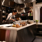 白い大理石のシェフズカウンターは10席、テーブル席は12席。グレースさんが料理を始めると、店内の空気は次第にライブのような熱気を帯びはじめます