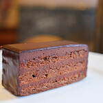 猫:こちらは、日本人ショコラティエの先駆けとして有名な土屋公二さんのお店です。カカオ豆の産地や品種を厳選し、例えば「サンフォアキン ドス」というケーキでは、豊かな香りと酸味を合わせ持つベネズエラ産チョコレートを使い、スポンジとガナッシュ(チョコレートクリーム)を2層仕立てにするなど、特徴的なチョコレートケーキが多いですね。