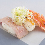 まずは「根室花まる KITTE丸の内店」。漁師町、根室に本社を置いていることもあり、根室産のサンマや礼文島のボタンエビ、野付産ホタテなど、北海道産のネタを中心に取り揃えています。こんな風に特色を出して、キャラを際立たせていくやり方は新人時代から心がけたいもの。