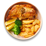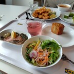 直火焼きした白身魚、ざく切りトマトとアボカドで作ったサルサソース、ルッコラをトッピング。ケチャップをベースにホースラディッシュ(西洋わさび)を利かせたロシアンドレッシングで。