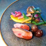 フランスとベルギーで修業したシェフによるフレンチレストラン「ル・マルカッサン ドール」。鎌倉野菜を使った色鮮やかな皿は目でも楽しめる。アミューズからデザートまでついたフルコースランチは3,700円(税抜)。