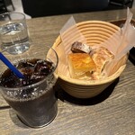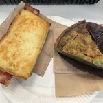 モーニングメニューより「ブリオッシュフレンチトースト」。自家製のブリオッシュで作ったフレンチトーストは、ベーコン、リコッタチーズ、メープルシロップが添えられ、甘じょっぱさが癖になります。セットドリンクは+200円。