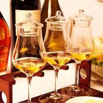 さらにバーエリアに併設された「ウイスキーラウンジ」では、スコッチを中心に各産地のモルトウイスキー約280種を取り揃えています。これらコレクションの中から産地やメーカー、熟成年数など様々な観点からセレクトした3種類のウイスキーが楽しめるフライトテイスティングメニュー14種(2,500円)の用意も。