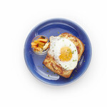 モーニングからディナーまで、さまざまな卵料理を提供するユニークなカフェ。フレンチトーストやティラミスにも惹かれるものの、一番人気のデザートはやっぱりプリン! 生クリームがたっぷりのって、大満足の食べ応えです。