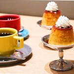 2019年4月にオープンしたカフェ。店内に一歩足を踏み入れると、都会の喧騒を忘れさせてくれる、隠れ家のような空間が広がります。金箔があしらわれた高級感あふれるプリンは、コーヒーといっしょにゆっくり堪能して。
