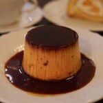 かの六本木「キャンティ」系列のカフェ。パスタなどのイタリアンが気軽に楽しめます。プリンは四角くカットされたタイプ。ビターなカラメルがくせになりそうなおいしさです。ラムレーズンが味と食感のアクセントに。