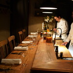 井の頭線神泉駅から徒歩15分、淡島通りの裏手に知る人ぞ知るイタリアンの名店「チニャーレ・エノテカ」はある。住宅地にひっそりと建つ一軒家、ドアを開けるとまるでヨーロッパのどこかにトリップしたかのような錯覚に陥る。キッチンを取り囲む無垢の木のL字形カウンター、暗めの照明、アンティークの小道具やロウソク、花の選び方まで温もりがあるのに都会的で、どこか色気がある世界観だ。
