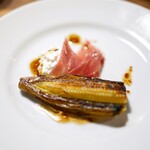 北イタリア・ピエスモンテで修行したシェフが作り出すのは、旬の素材がもつおいしさを最大限に引き出す、手をかけ過ぎない繊細な料理。席に着くとまず、きれいに盛られた調理前の食材を一つ一つシェフが説明してくれるところからスタートする。