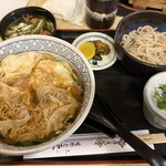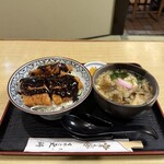 かなり大きなロースカツに、副菜が充実しています。ドレッシングがたっぷりの生野菜、冷や奴、結構大きめのミニうどん、自家製漬物、味噌汁。このお店、うどんも中華そばも、丼も、実は何を食べてもおいしいのですが、この店の近くに音楽スタジオがあり、仕事が深夜に及ぶときは、晩ごはんにこの定食を食べることにしています(仕事があるので、お酒は飲めないので、せめて豪華な定食を……となるのです)。サラダにしっかりドレッシングをあわせているところ、とんかつソースがたっぷりなところ、味噌汁の温度……細部からもおいしいものを食べて欲しいという思いが伝わってきます。