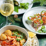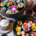 合わせてこちらで楽しめるのは、タイとベトナム料理のいいところ取りをしたアジアンフュージョン料理です。「バイチャップルー」という葉で巻いた蟹と青パパイヤのミエンカム(おつまみスナック)や、シュリンプトーストなどアジアへ誘うひとくち前菜から、バナナの葉を巻いたボックスの上でお肉や海老を炙る“ABURI”BOX、そしてトム・ヤム・クンやフォーまで、アジア料理らしい要素がありながら、化学調味料・トランス脂肪酸ゼロで丁寧に出汁をとった体に優しいアジアンフードが揃います。