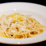 ぜひ最後にオーダーして欲しいのがボッタルガ(カラスミ)がたっぷりとかかった「〆パスタ」。食事のラストでも食べられるよう、50gと少なめなのも嬉しい。使用するパスタは「マルテッリ」の2mm。小林シェフが自身の店でも使用している銘柄だ。