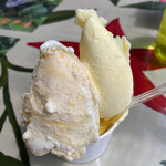 山形県「山形食品」が手がける「山形ジェラート つや姫」350円は、山形のブランド米「つや姫」を使用。お米のつぶつぶとした食感がアクセントになった、新感覚の味わい。