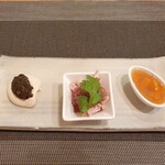 聞けば、白胡麻の生ペーストと炒ったねり胡麻の2種類の胡麻ペーストを用いているそうで、白胡麻で濃厚さとほのかな甘みを、炒りごまで香りの高さを演出している。トッピングは、肉味噌のほか水菜とローストした松の実。辛さが苦手な向きにもおすすめだ。担々麺1,500円(税込)。ランチは1,800円(税込)コースの締めとして登場する。