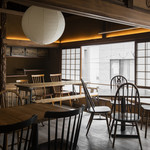 中に入ると、家屋が持つレトロで重厚感のある造りの良さを生かしながらも、モダンでお洒落な空間が広がる。内装は有名建築家に依頼したそう。器は和食器の陶芸作家の作品を使い、テーブルや椅子は老舗家具屋に特別に注文をしている。驚くことに建具やインテリアとして飾られている家具などは、この家で実際に使われていたものたち。家主が愛情をこめて繋いできたこの場所に居ると、ここが都会の中心地だということを忘れてしまうほどだ。