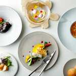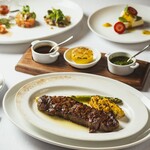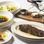 ディナータイムはGRILL&WINEがテーマ。ゆったり時が流れる開放的な空間で「トマホークステーキ(骨付きリブローズ)」「骨付き仔牛のロース」などと共にワインのペアリングを堪能できます。
