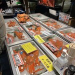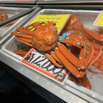 1軒目は「忠村水産 小売部」。お目当てのボタン海老はロシア産(600円・税込)と氷見産(700円・税込)があり、迷わず氷見産を。ねっとりと濃厚な甘みがあり、朝食のスタートには最高のアミューズ。お店の方に許可をいただき、日本酒でマリアージュ。